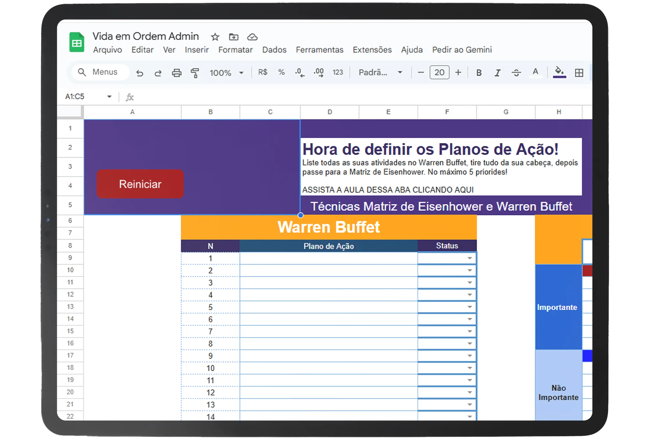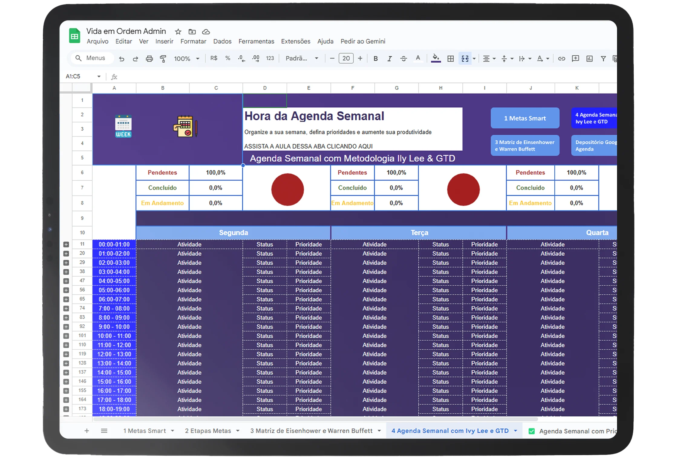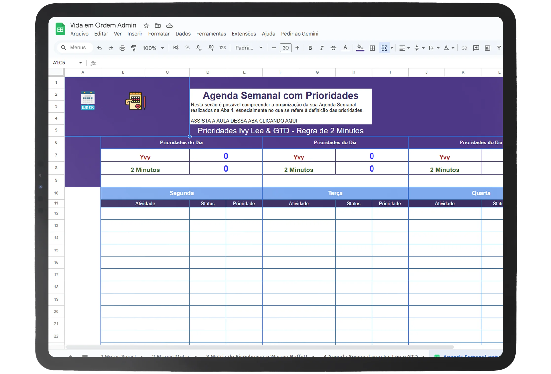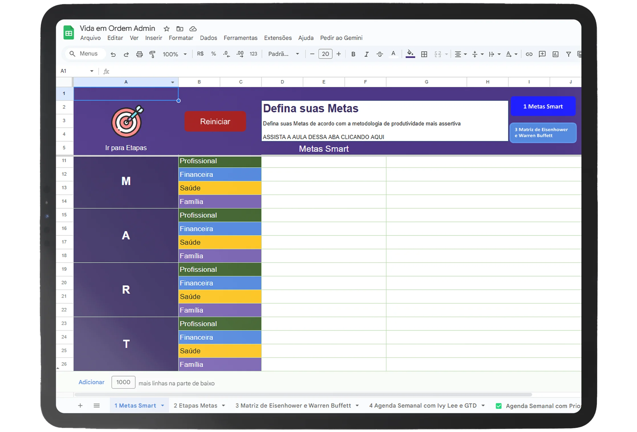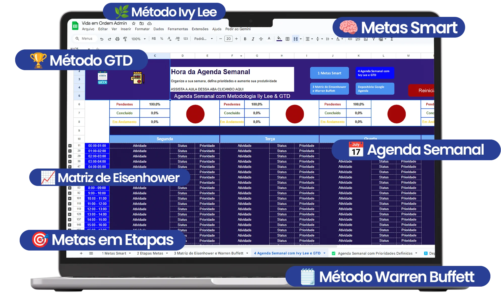 Tudo isso junto, em apenas 4 abas interligadas e simples de serem feitas.