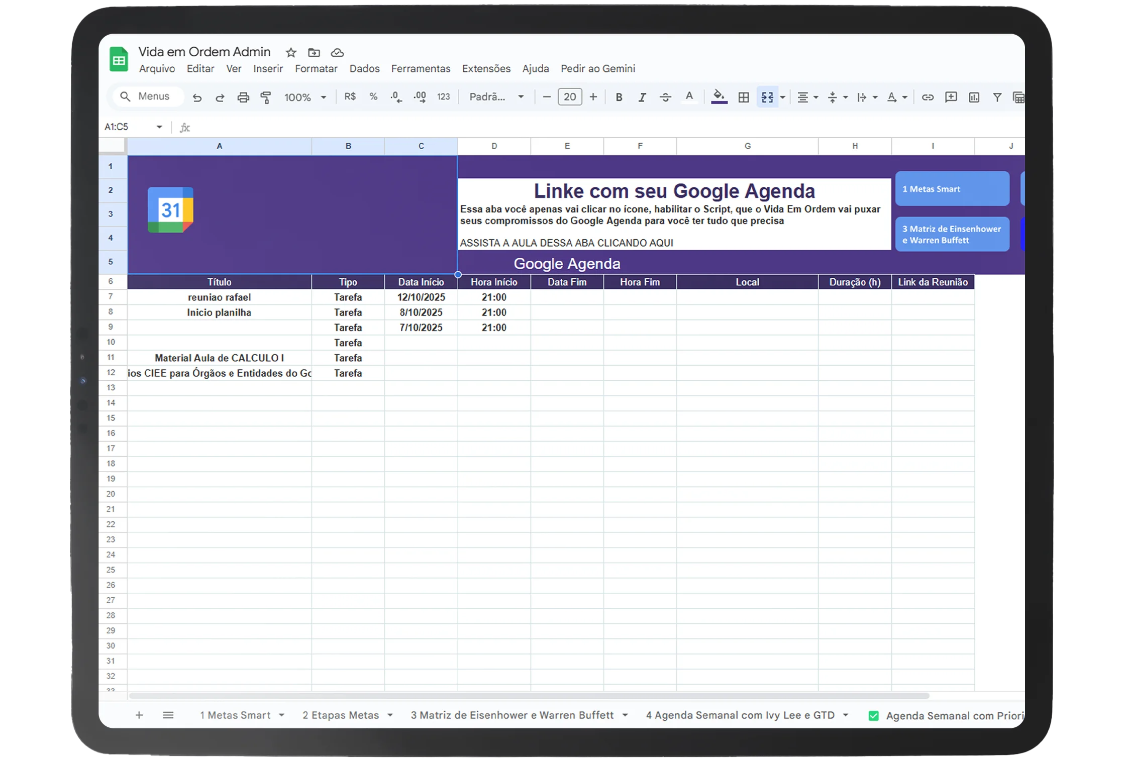 O Vida em Ordem é integrado com o Google Agenda e com apenas 1 clique ele puxa todos os compromissos que você tem no Google Agenda para uma aba.
